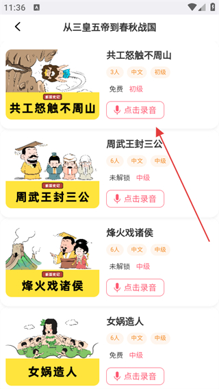 3、進入所選課程頁面,找到想要錄音的劇本,點擊點擊錄音按鈕即可。