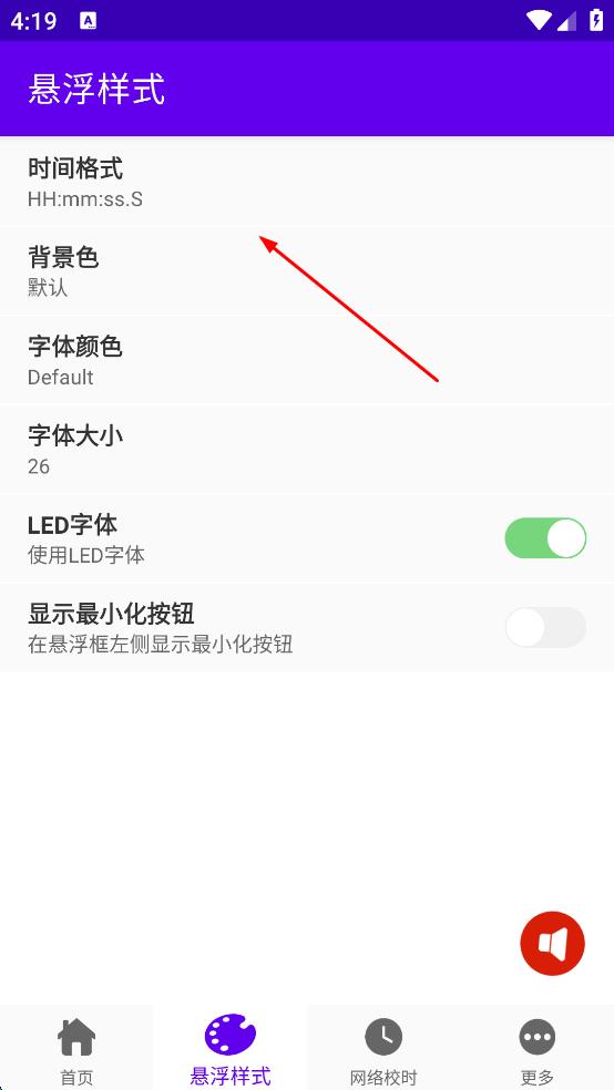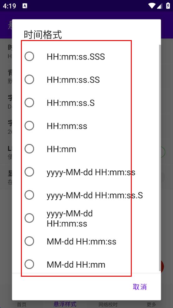 3、在懸浮樣式設(shè)置頁面,找到“時(shí)間格式”選項(xiàng)并點(diǎn)擊,彈出時(shí)間格式選擇列表。