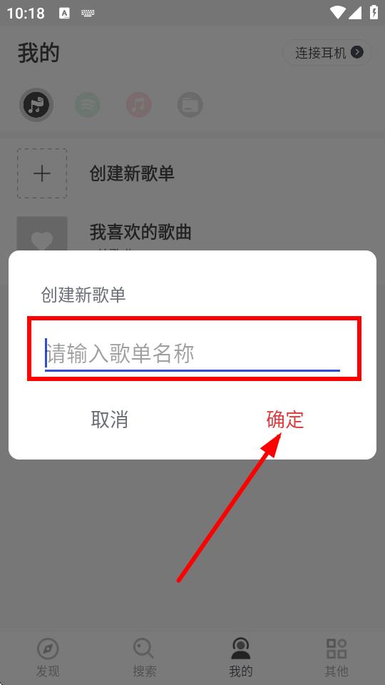 3、在彈出的輸入框中,輸入想要?jiǎng)?chuàng)建的歌單名稱(chēng)。