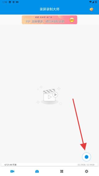 1、打開錄屏錄制大師APP,在首頁內(nèi)點(diǎn)擊右下角錄制的按鈕。