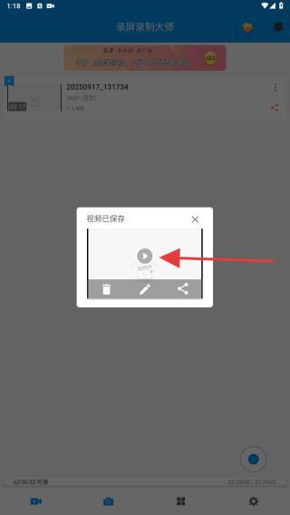 錄屏完成自動(dòng)保存到相冊(cè)(設(shè)置中可查看保存路徑),無水印高清無遮擋的畫面,讓您一鍵極速分享到各種社交平臺(tái)和視頻平臺(tái)