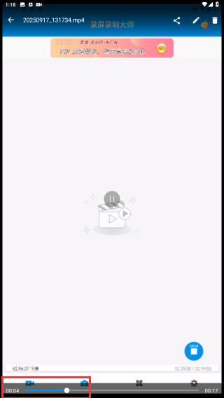 3、再次點(diǎn)擊藍(lán)色按鈕后,可終止錄制,點(diǎn)擊后界面會(huì)彈出剛剛錄制的視頻內(nèi)容,再點(diǎn)擊播放的按鈕。