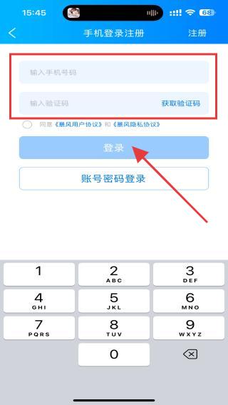 3、在手機登錄注冊的頁面內(nèi),輸入手機號與驗證碼,再點擊登錄的按鈕。