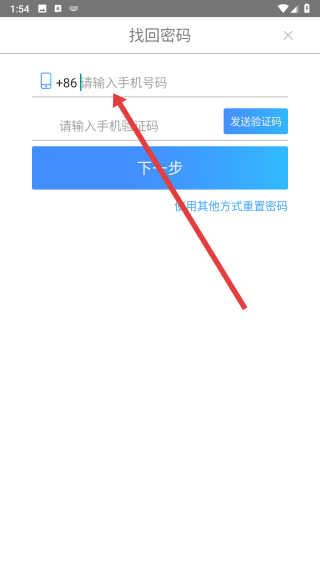 2、跳轉(zhuǎn)到找回密碼頁(yè)面,可以點(diǎn)擊上方輸入填寫(xiě)手機(jī)號(hào)碼,以便發(fā)送驗(yàn)證碼完成后續(xù)操作。