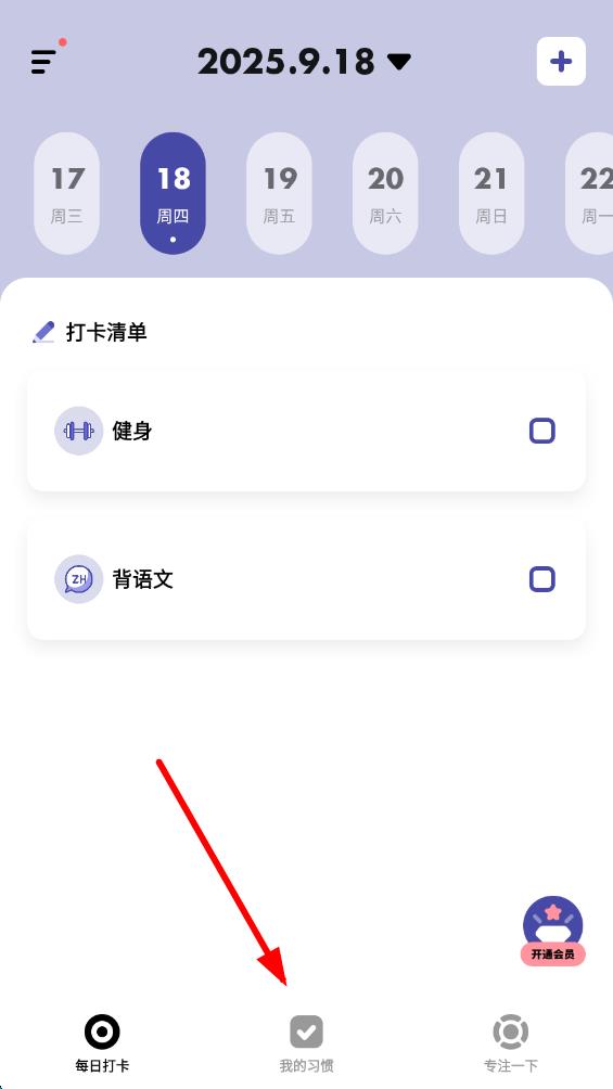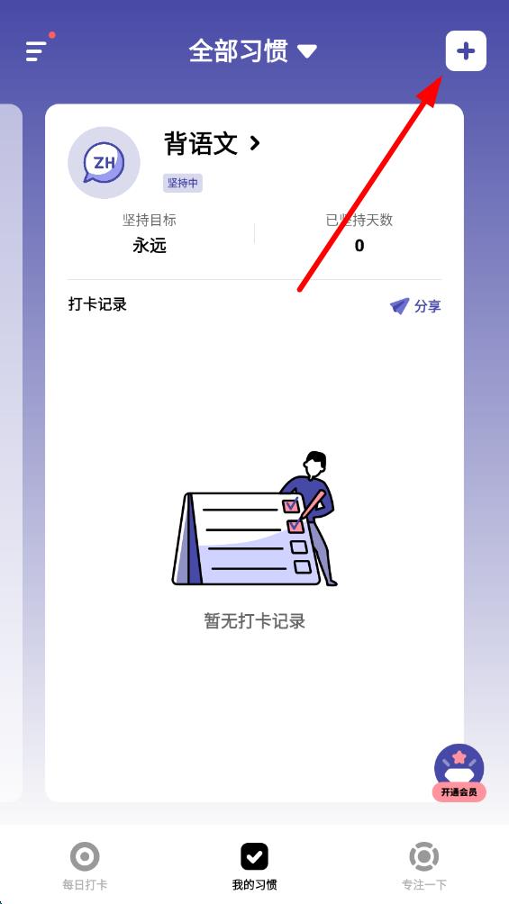 2、在習(xí)慣管理界面中,點(diǎn)擊右上角的添加按鈕,進(jìn)入添加打卡習(xí)慣頁(yè)面。
