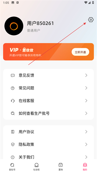 2、在個人中心頁面,點擊右上角齒輪形狀的設(shè)置圖標,進入設(shè)置界面。