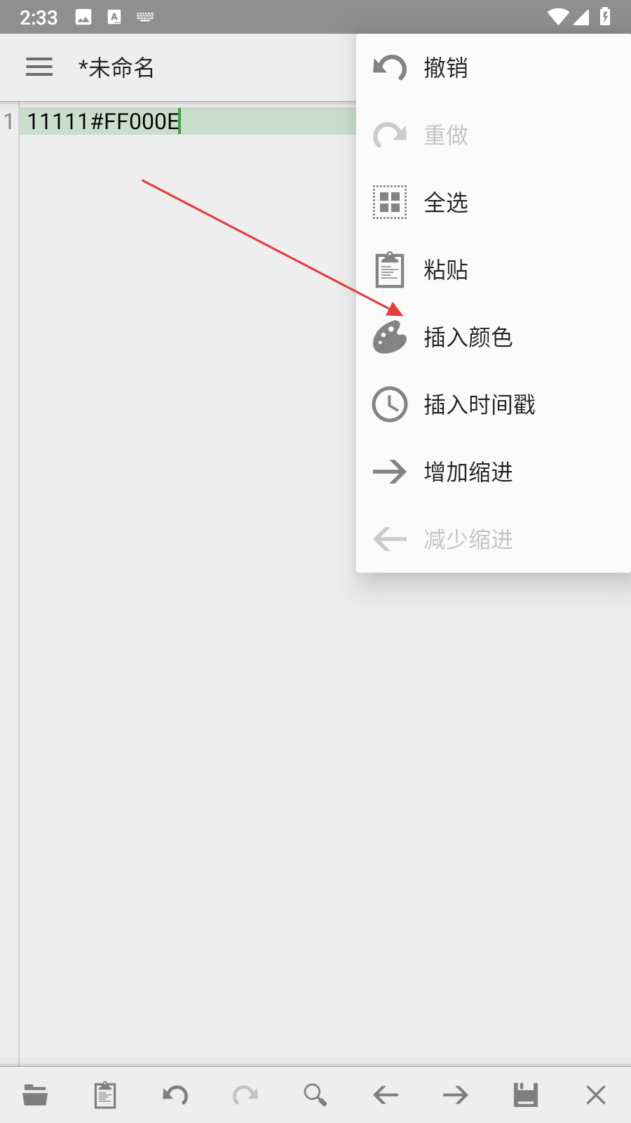 2、在彈出的操作菜單中,找到并點(diǎn)擊插入顏色選項(xiàng),彈出顏色選擇界面。