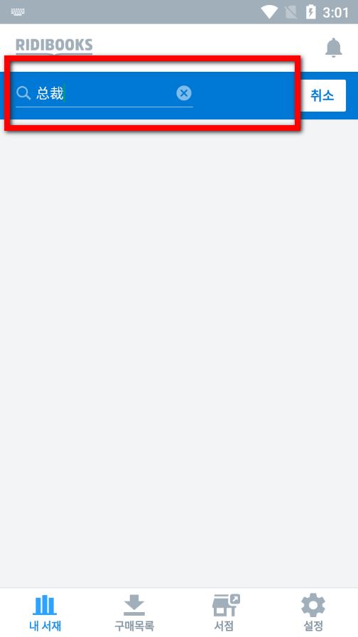 1、打開RIDIBOOKS應(yīng)用,在界面上方點(diǎn)擊搜索圖標(biāo)。