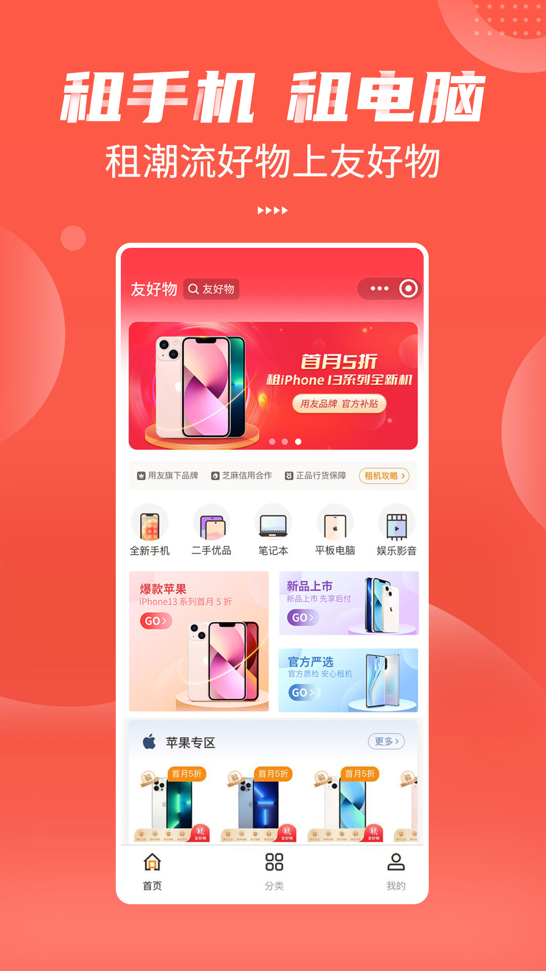 友好物租機秉承“以租代購、先享后付、共享共贏”的信用消費新理念,服務(wù)年輕化、愛時尚、愛科技的優(yōu)質(zhì)用戶群體,不斷提升用戶在高端智能科技產(chǎn)品方面的體驗感和便利度,是一款安全靠譜的租機平臺,用友旗下品牌,支持多種電子設(shè)備,用戶可以放心租機。