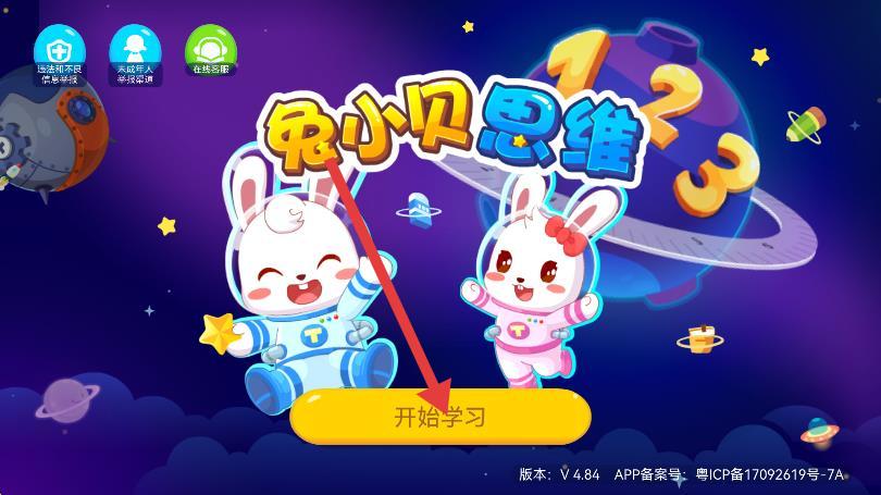 1、打開兔小貝思維,點擊主界面中的開始學(xué)習(xí)。