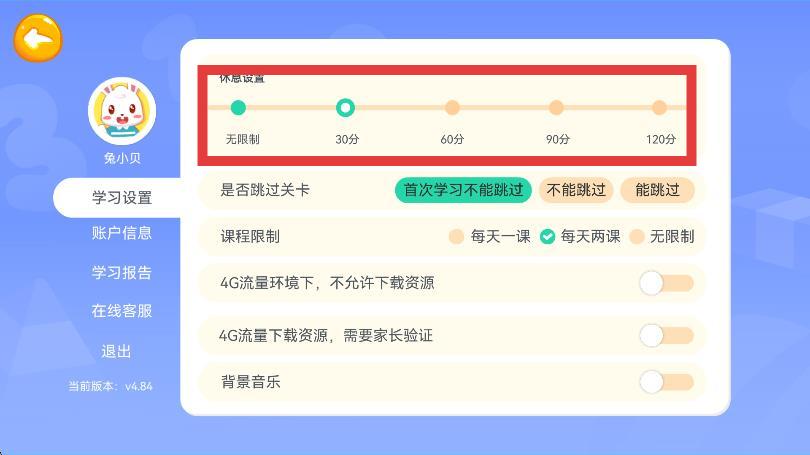 3、休息設(shè)置:默認(rèn)30分鐘后為休息時間,預(yù)防長時間造成疲勞,也可根據(jù)情況自定。