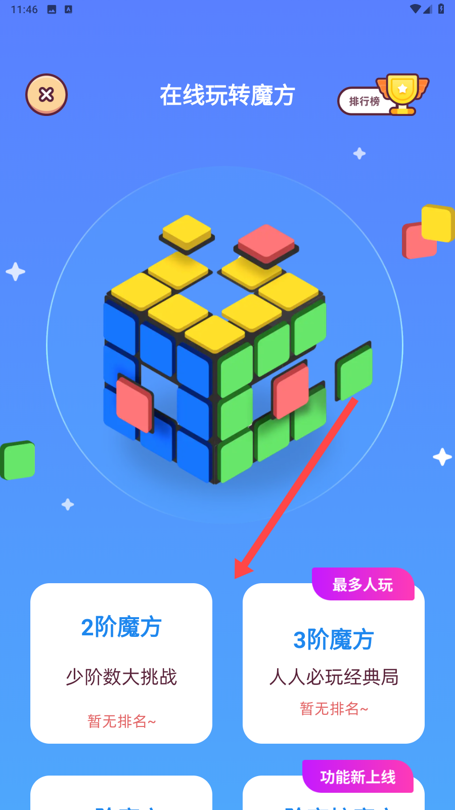 2、進入在線玩轉(zhuǎn)魔方,可選2階魔方,3階魔方等多人玩經(jīng)典局,直接開啟線上魔方玩法。