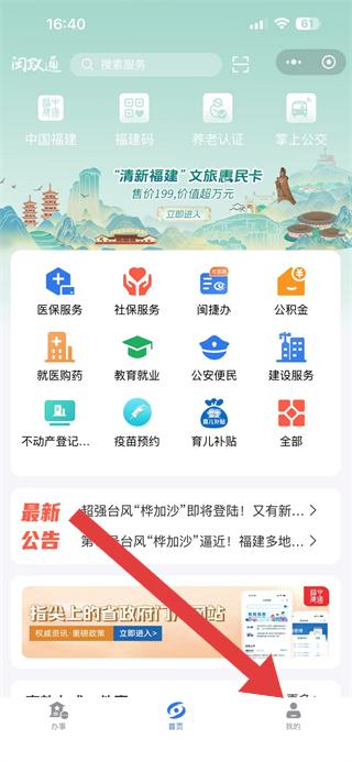 1、打開閩政通APP,點(diǎn)擊頁面底部右側(cè)的我的選項(xiàng),進(jìn)入個(gè)人頁面。