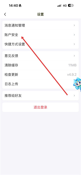 3、在設(shè)置界面中,找到并點(diǎn)擊賬戶安全選項(xiàng),進(jìn)入賬戶安全頁面。