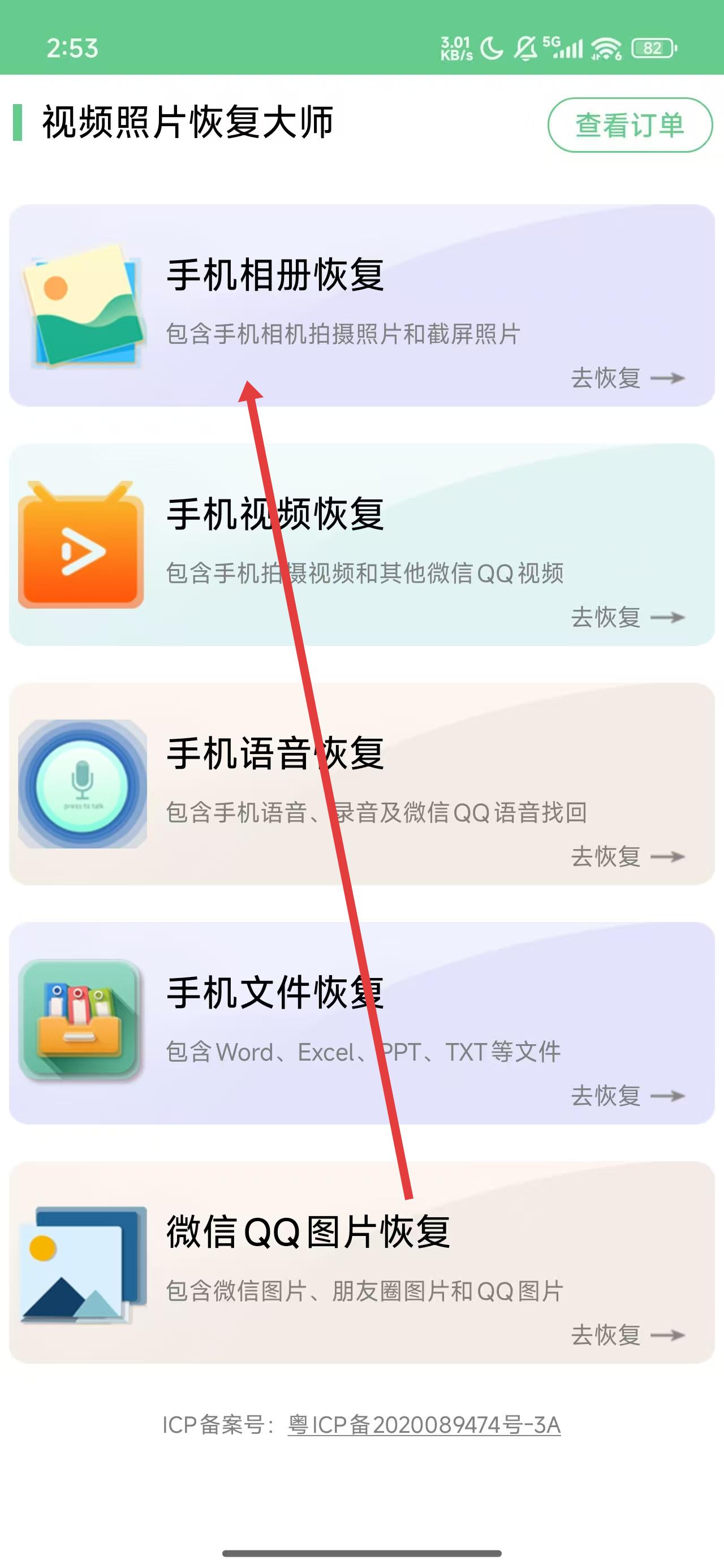 1、在進入到應(yīng)用中,可以選擇點擊手機相冊恢復(fù)功能進行使用。