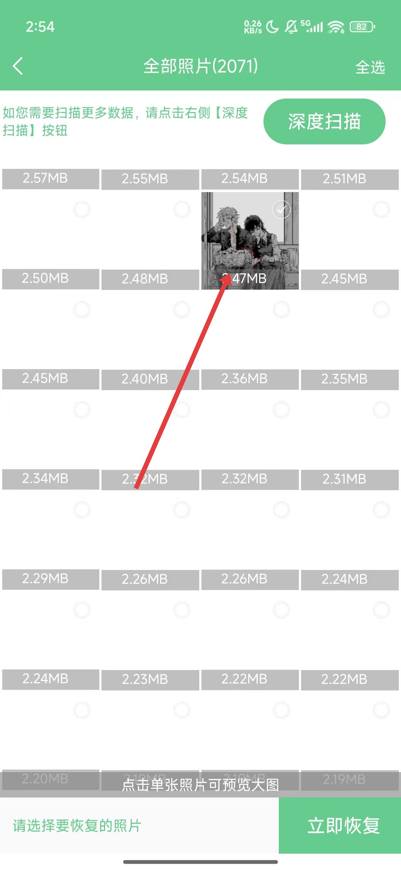 3、可以點擊選擇需要恢復(fù)的圖片進行恢復(fù)操作。