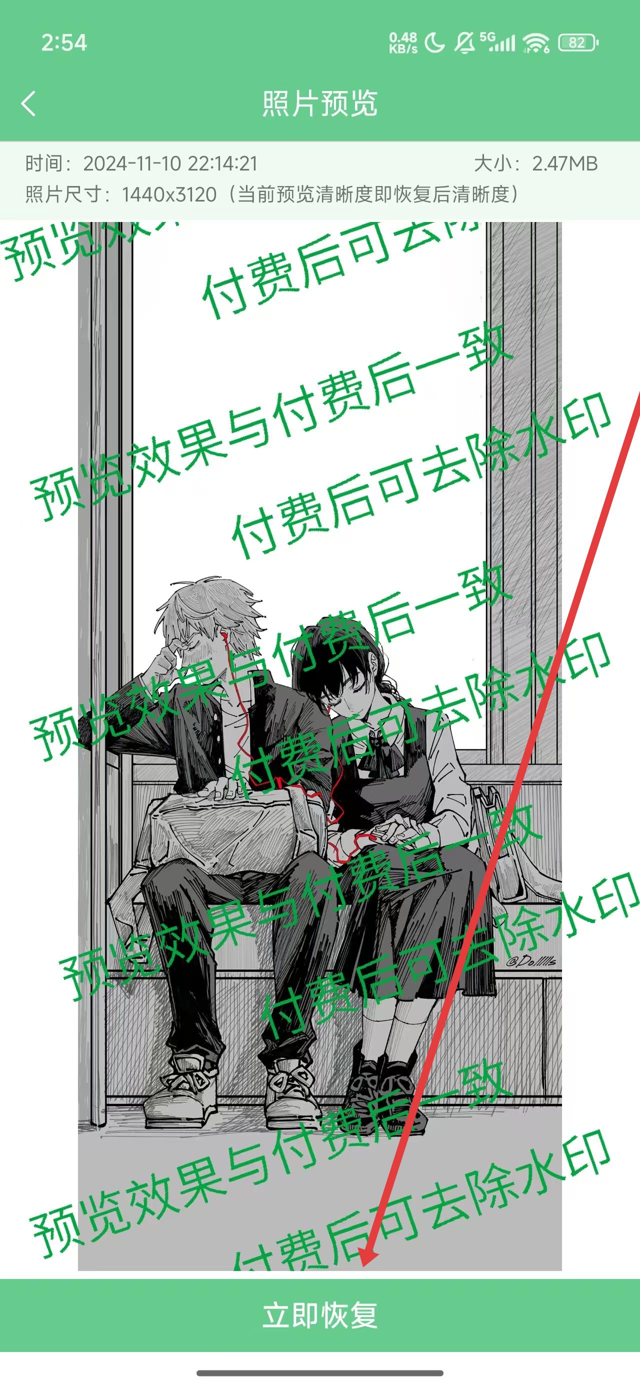 4、在進入到照片預(yù)覽頁面中,點擊下方立即恢復(fù)按鈕,即可恢復(fù)該圖片。