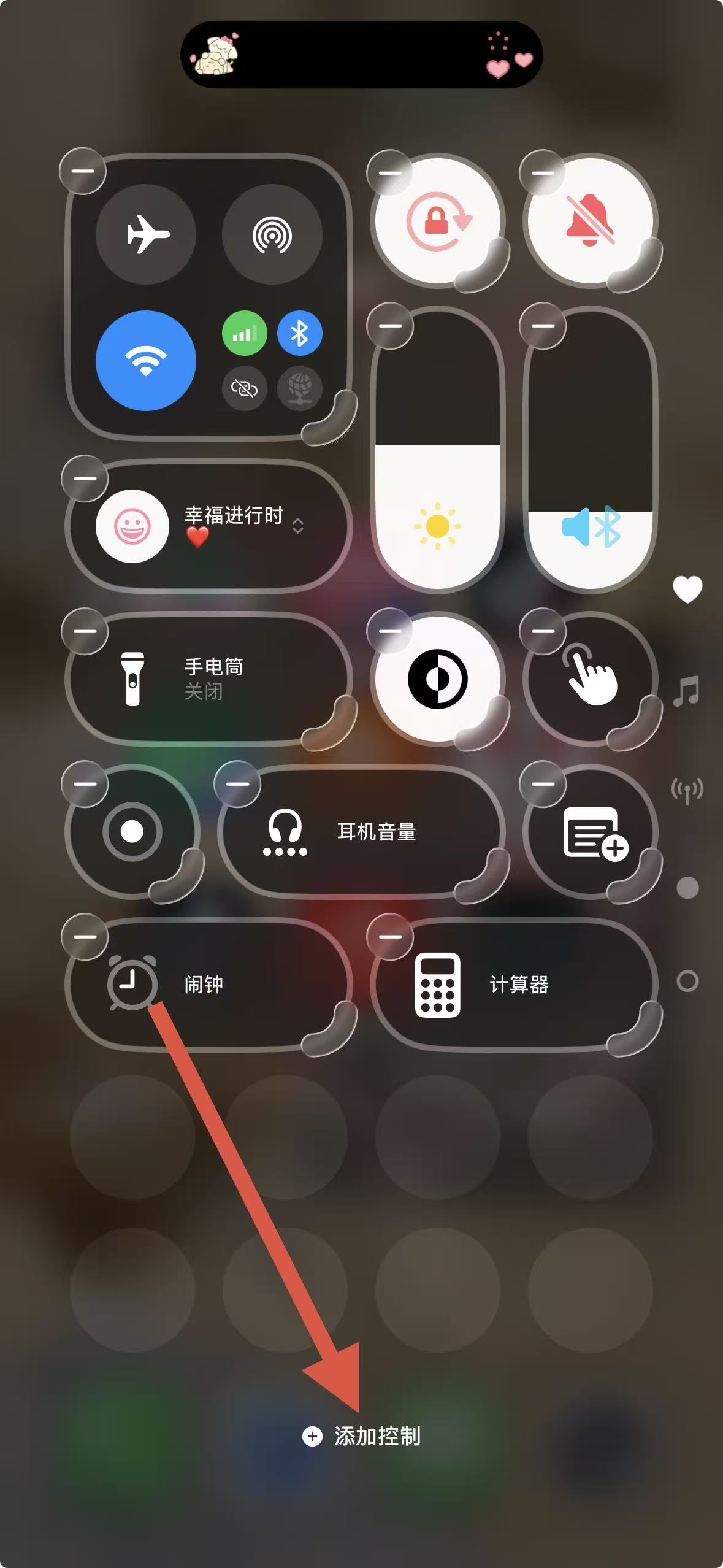 1、打開手機控制中心,點擊下方添加控制選項,進入添加控制界面。