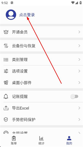 1、打開簡約記賬,點擊底部導航欄最右側(cè)我的選項。