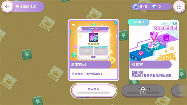 2、進(jìn)入音樂游樂場后還可以選擇不同的游戲模式,新手先完成章節(jié)舞臺(tái)吧;