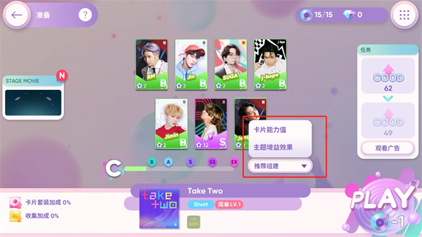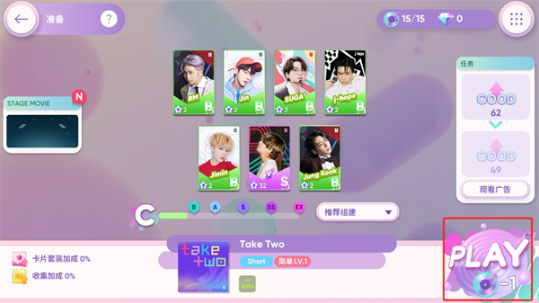 5、然后我們點(diǎn)擊play就可以開始進(jìn)行挑戰(zhàn)啦,注意每一次音樂挑戰(zhàn)都會(huì)消耗一次光盤數(shù)量哦,總共15次用完會(huì)按時(shí)間慢慢恢復(fù)。