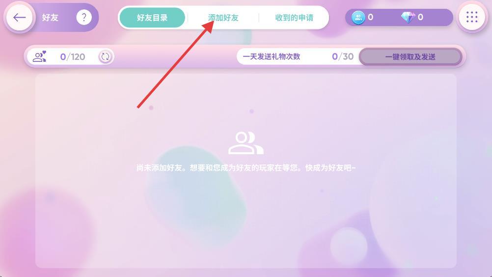 3、在好友界面中,點(diǎn)擊上方的添加好友選項(xiàng)。