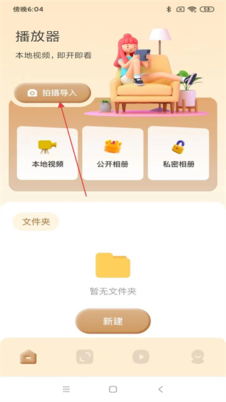 1、打開行星視頻APP,在首頁內(nèi)點(diǎn)擊拍攝導(dǎo)入的功能按鈕。