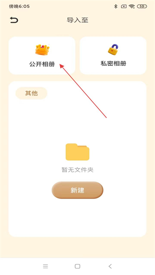 5、進(jìn)入導(dǎo)入的頁面內(nèi),選擇并點(diǎn)擊公開相冊即可導(dǎo)入成功。