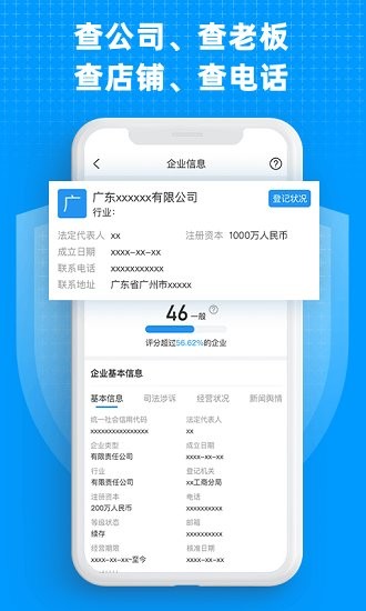 3、為用戶提供了查公司、查老板、查店鋪、查電話等等的查詢功能,用戶可以選擇自己需要的功能進(jìn)行使用。