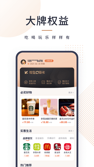 花生口袋卡是為用戶提供各類大牌權(quán)益的信用消費(fèi)卡,精選品牌咖啡、果汁奶茶、人氣美食等覆蓋我們吃喝玩樂的各種特權(quán),工資不夠花,用花生口袋卡,解決缺錢購物難題,讓你有信用就有錢花,做你省錢購物好幫手,眾多權(quán)益低至一元起。