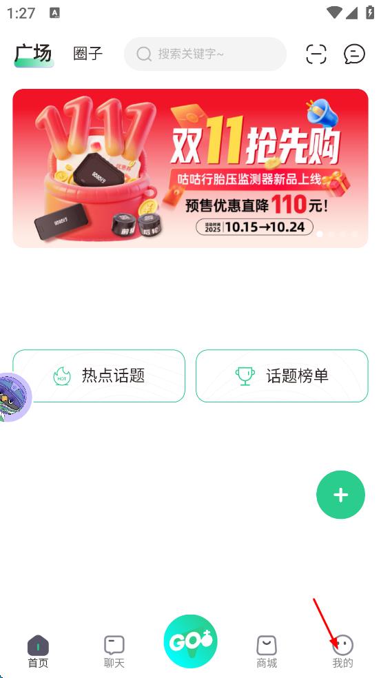 1、打開咕咕行APP,進入首頁后,點擊頁面右下角“我的”按鈕。