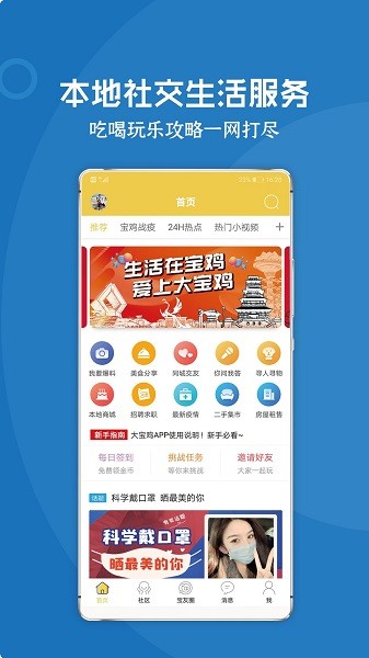 大寶雞APP是寶雞本地極具人氣的社交生活服務(wù)平臺(tái),提供寶雞吃喝玩樂(lè)、同城交友、熱點(diǎn)資訊、生活服務(wù)、線上線下活動(dòng)等豐富功能。