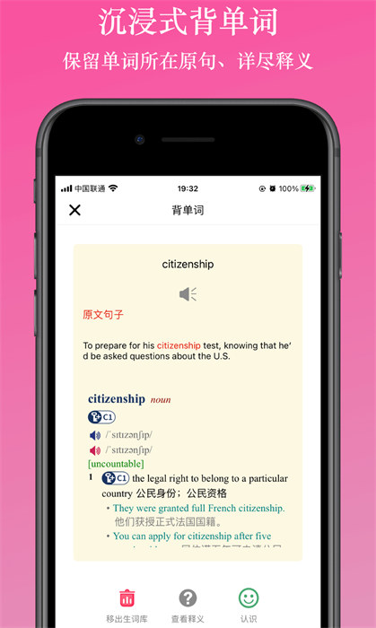 4. 背單詞:生詞本中保留單詞所在的原文句子, 結(jié)合上下文復(fù)習(xí)起來印象更深刻,既可以重溫句子,又能通過句子來強(qiáng)化單詞記憶;