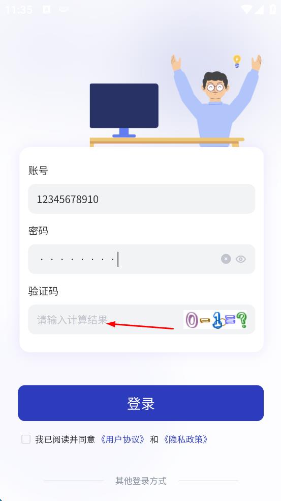 3、在密碼輸入框中輸入密碼,再根據(jù)右側(cè)計(jì)算提示,算出結(jié)果并輸入到驗(yàn)證碼輸入框。