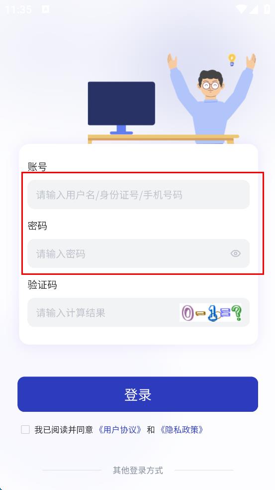 2、在登錄頁(yè)面的賬號(hào)輸入框中,輸入用戶名、身份證號(hào)或手機(jī)號(hào)碼。