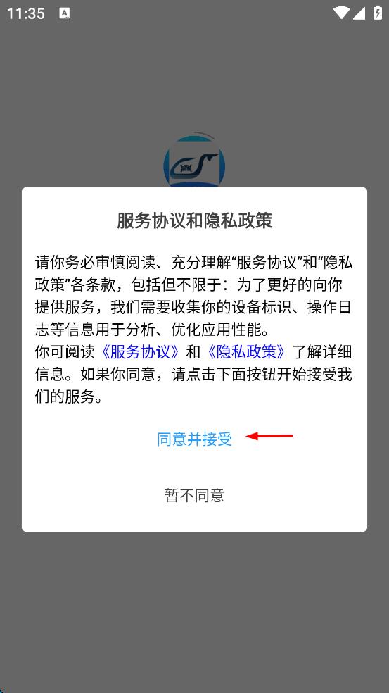 1、打開(kāi)該政務(wù)類APP,會(huì)出現(xiàn)服務(wù)協(xié)議和隱私政策界面,仔細(xì)閱讀后點(diǎn)擊“同意并接受”,進(jìn)入登錄頁(yè)面。