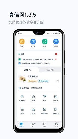 真信網(wǎng)APP是北京真信網(wǎng)絡(luò)科技有限公司打造的一款品牌智能管理服務(wù)平臺,是為企業(yè)提供產(chǎn)銷一體化的管理軟件,幫助打造數(shù)字化、智慧化企業(yè)。軟件為各行各業(yè)的品牌管理者提供集智能防偽、溯源追蹤、品牌推廣、數(shù)字營銷、客戶管理、移動電商、數(shù)據(jù)采集與分析等功能,通過對人、物、場的數(shù)字化、智能化管理,全方位提升企業(yè)的品牌競爭力。