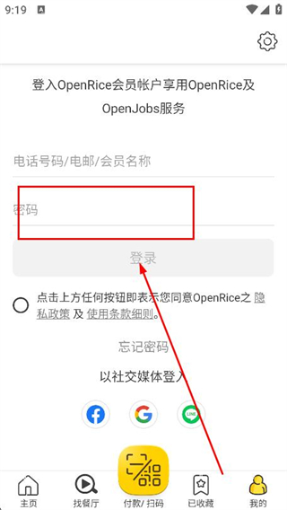1、打開OpenRice,在隱私政策界面點擊同意,進入主界面。