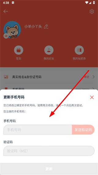 4、驗(yàn)證通過后,在更新手機(jī)號(hào)碼界面,輸入新手機(jī)號(hào)碼獲得驗(yàn)證碼,點(diǎn)擊更新完成手機(jī)號(hào)修改。