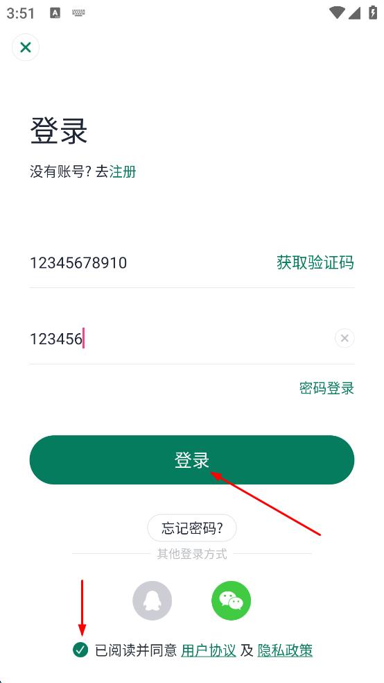 4、勾選“已閱讀并同意用戶協(xié)議及隱私政策”,然后點(diǎn)擊“登錄”按鈕。