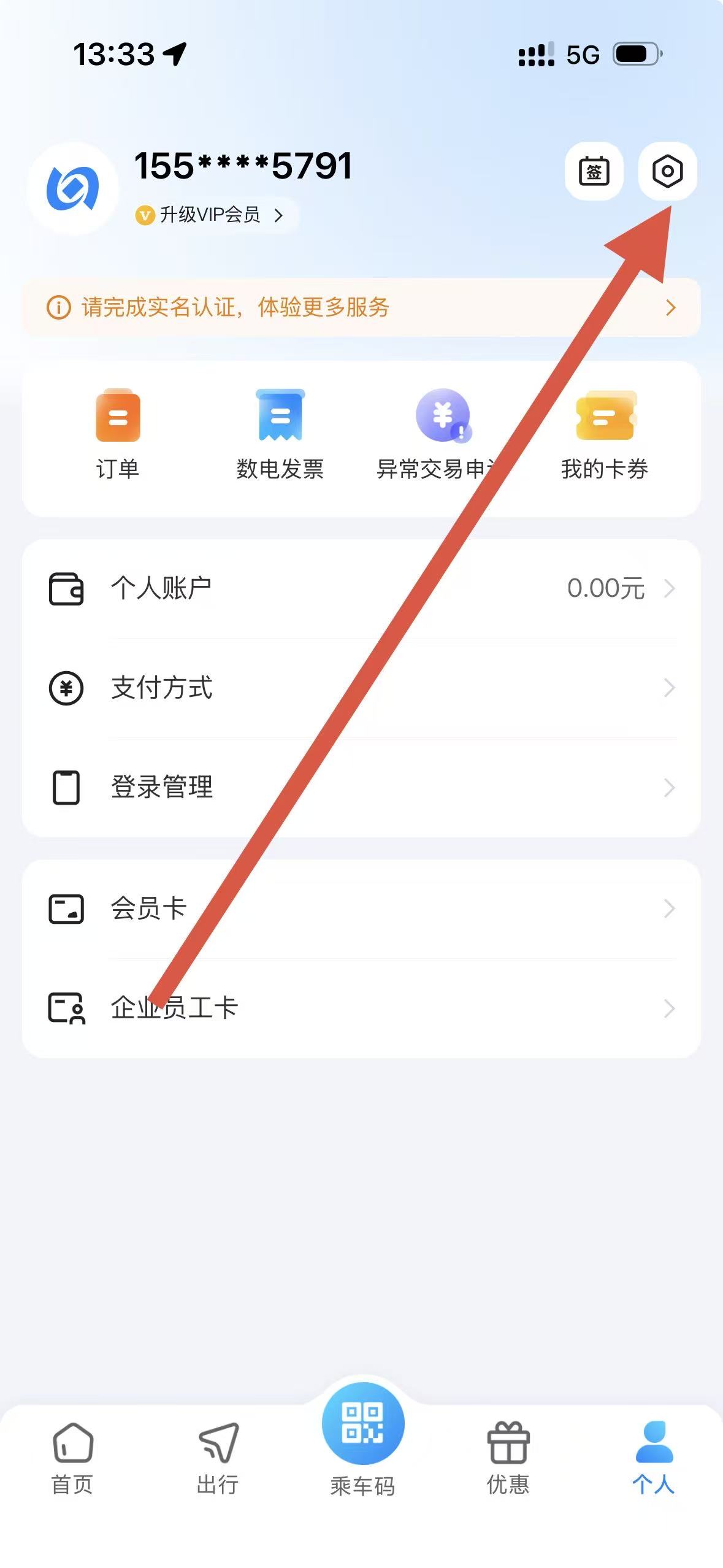 2、在個人頁面,點擊右上角設(shè)置圖標(biāo)進入設(shè)置界面。