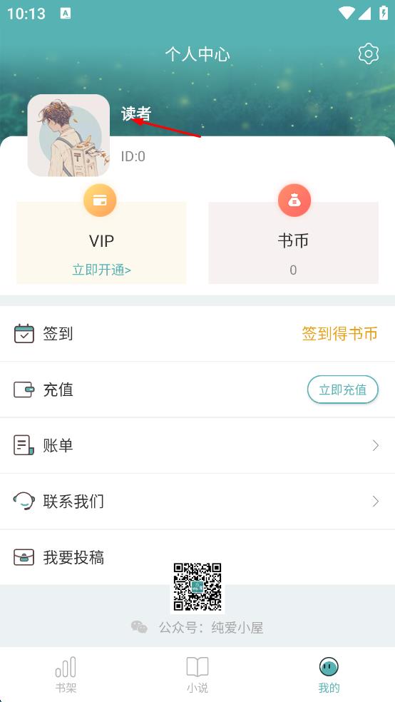 3、在個(gè)人中心頁面點(diǎn)擊讀者字樣,進(jìn)入驗(yàn)證碼登錄頁面。