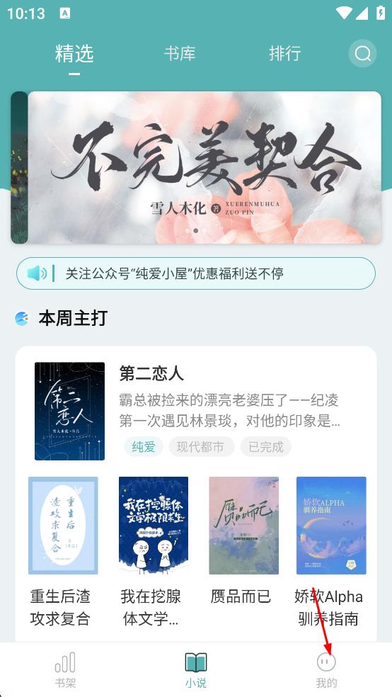 2、進(jìn)入精選頁面,點(diǎn)擊右下角我的選項(xiàng),進(jìn)入個(gè)人中心頁面。