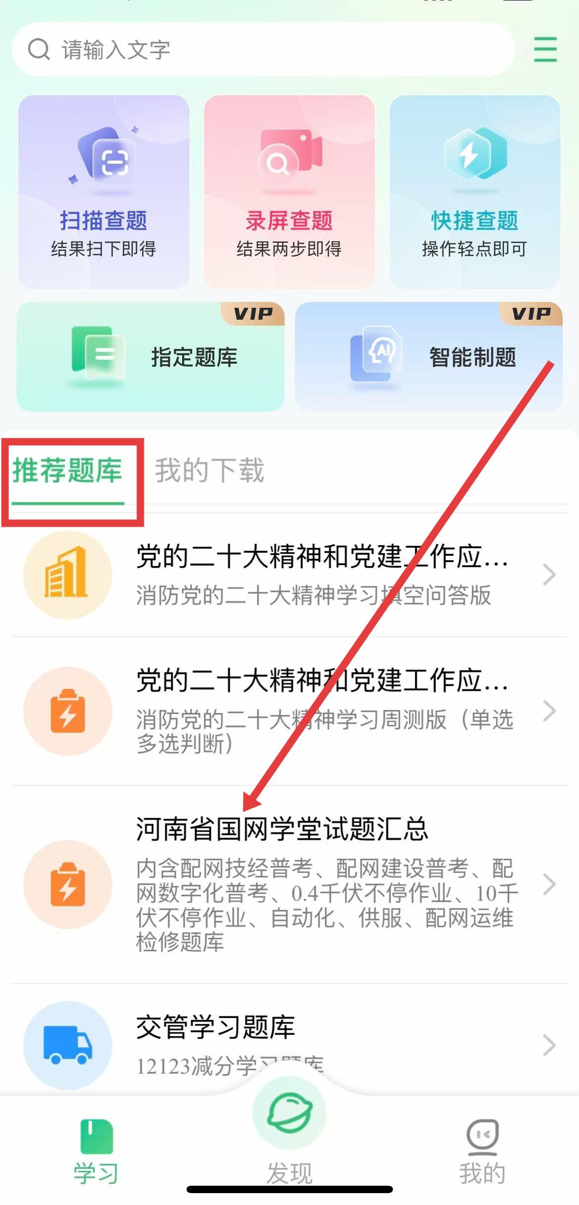 1、打開小包搜題APP,在學習界面的推薦題庫中,選擇想下載的題庫。