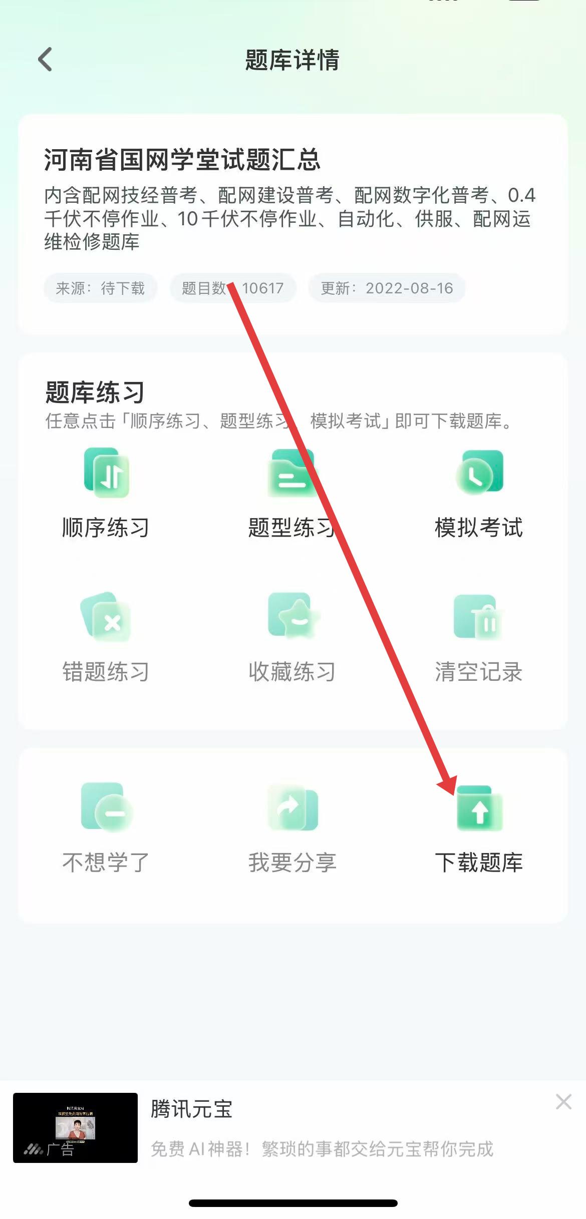 2、進入題庫詳情頁面,點擊下方下載題庫按鈕開始下載。