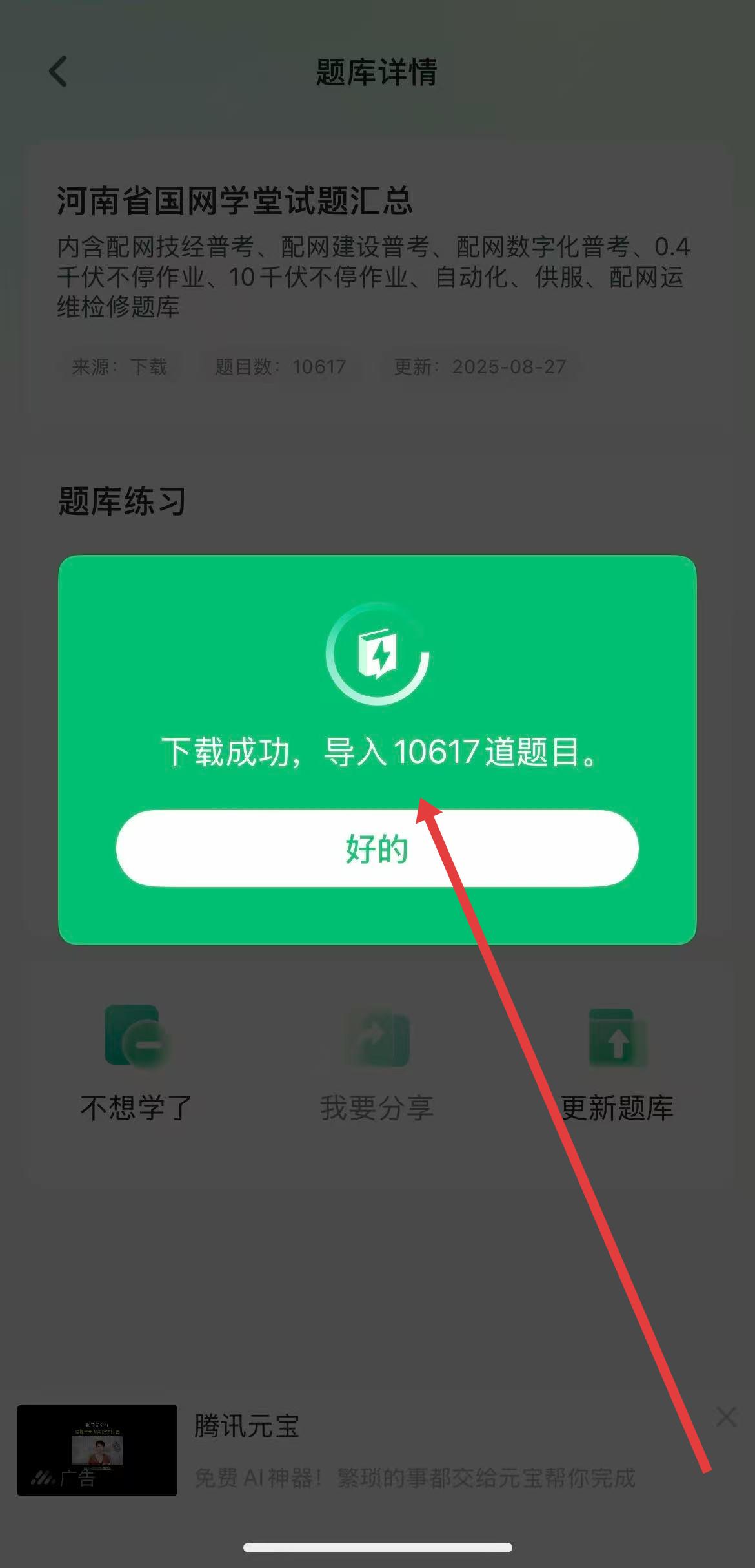 3、等待下載完成,出現(xiàn)下載成功提示后點擊好的,即可成功下載題庫。