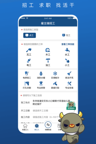 3、各種各樣類型的建筑工作全都有,可滿足工人們的找活需求。
