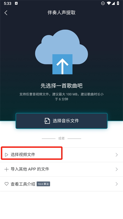 2、接著進(jìn)入功能頁面后可以看到該功能的詳情,從中可以看到支持音樂文件或者視頻文件等方式的選擇;