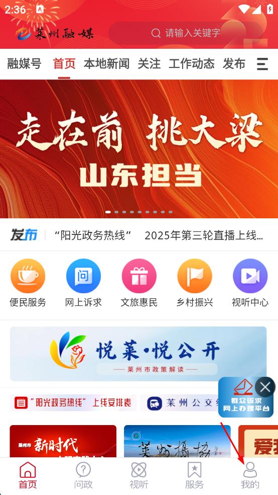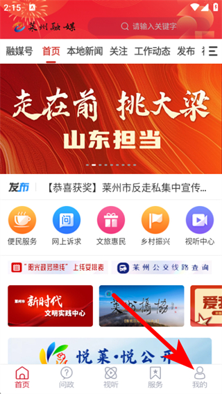 1、在萊州融媒的首頁,點擊底部我的按鈕,進入個人的頁面。