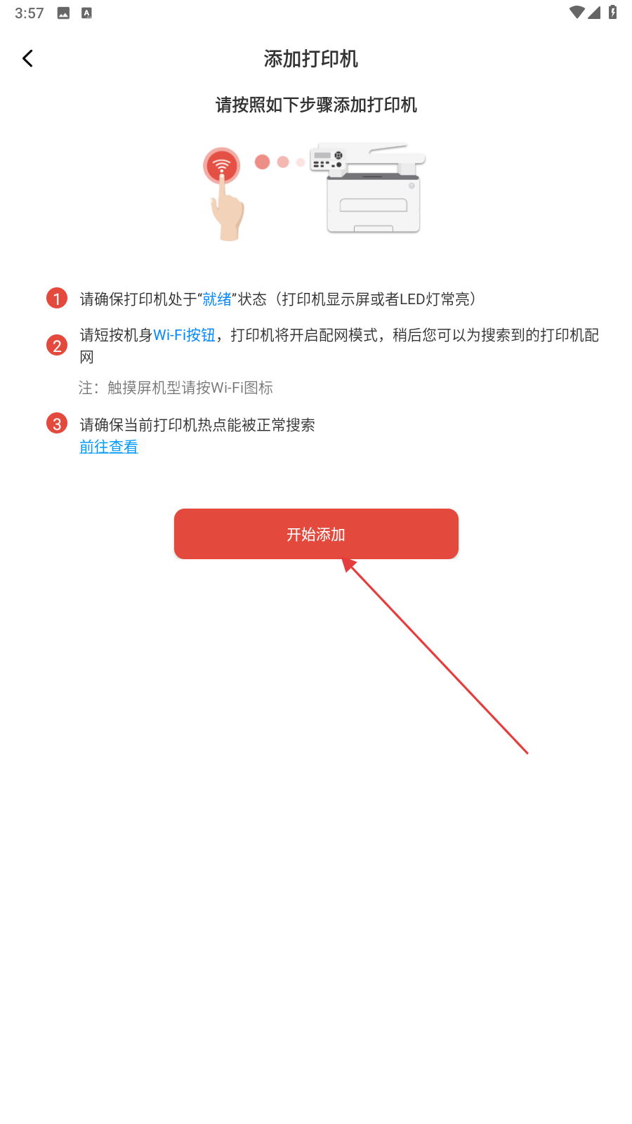 3、在添加打印機(jī)的頁面內(nèi),點擊開始添加的按鈕。